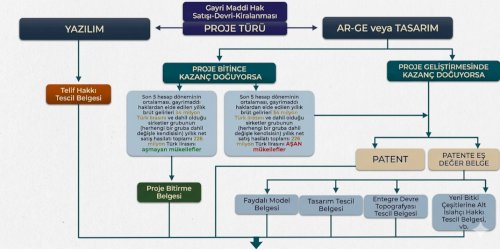 - Projeye ilişkin gayrimaddi hakların satışı, devri veya kiralanması söz konusu olacaksa patent veya eşdeğer belgeye başvuru yapılır (Kurumlar Vergisi Beyanname Verme tarihine kadar),