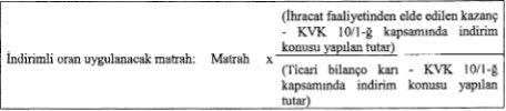 Bu durumda, kazancın 440.000 TL’lik kısmı beyannamede indirim konusu yapılabilecek olup kazancı kalan kısmının ihracat kazancı olarak %5 puan indirimli kurumlar vergisine konu edilmesi mümkündür.